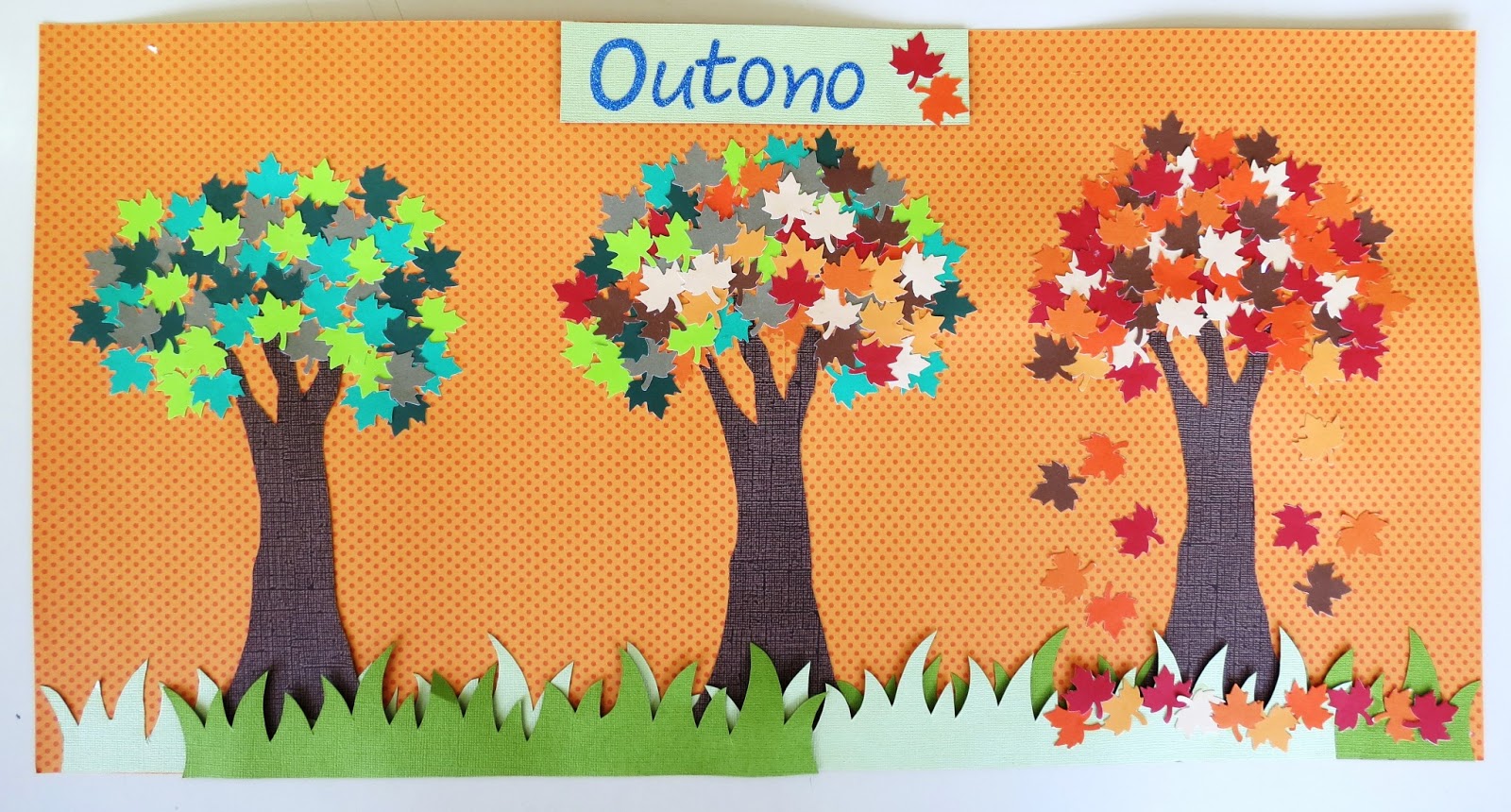 Com o alfabeto adesivo, forme a palavra“Outono”. Pregue sobre um retângulo no papel verde.